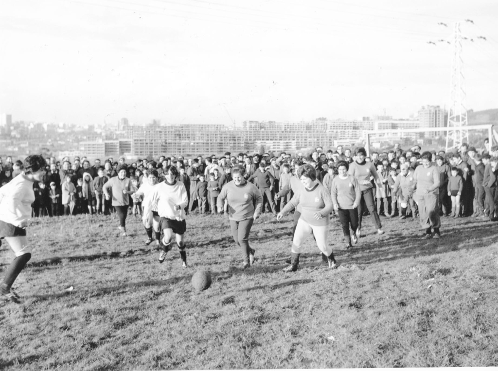 Partido de fútbol feminino en Elviña, 1963