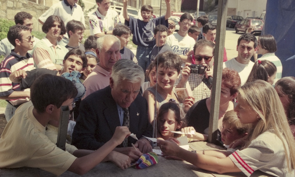 Arsenio Iglesias firmando autógrafos en Corme, 1996