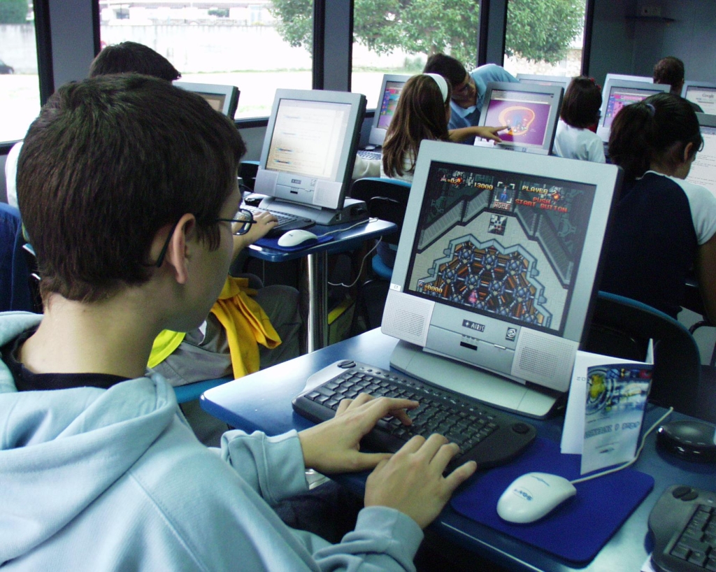 Autobús con ordenadores para realizar cursos de internet na súa parada en Viveiro, o 1 de setembro do 2002.