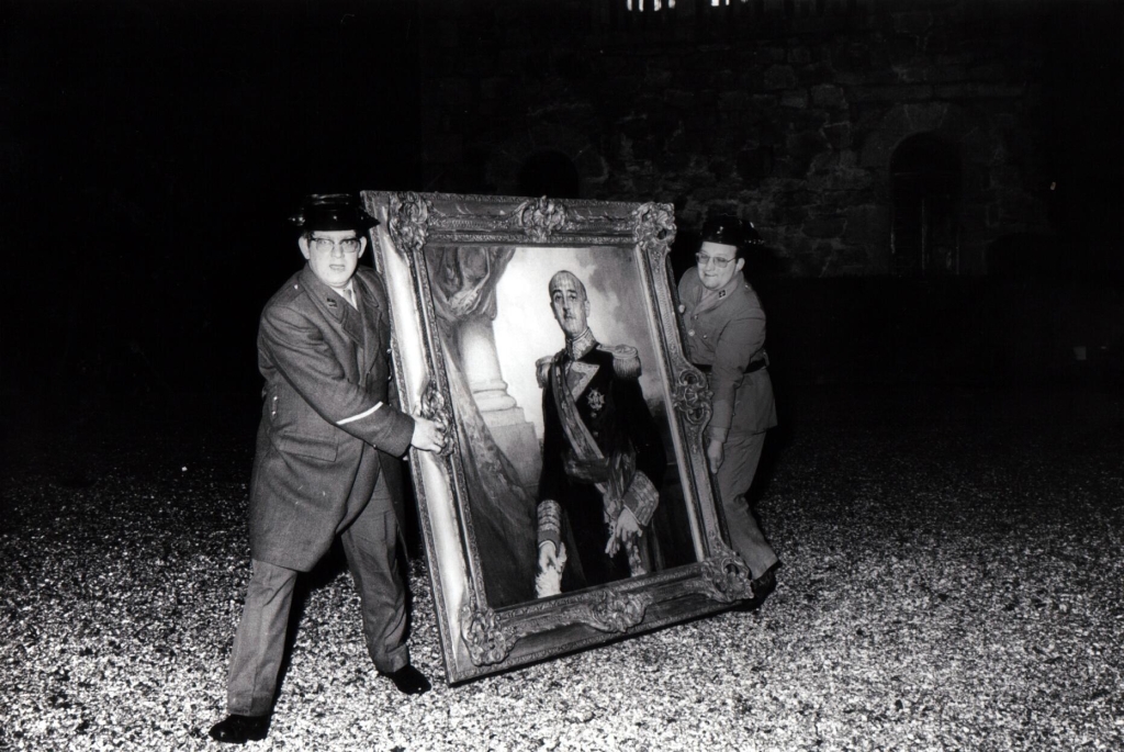 Esta imaxe corresponde ao momento no que dous gardas rescatan un cadro do incendio que houbo en Meirás. No cadro pódese ver retratado a Francisco Franco.