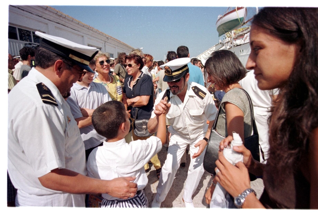 Amigos e familiares dan a benvida aos marines do buque escola que atraca tras 6 meses de travesía dende o porto gaditano.