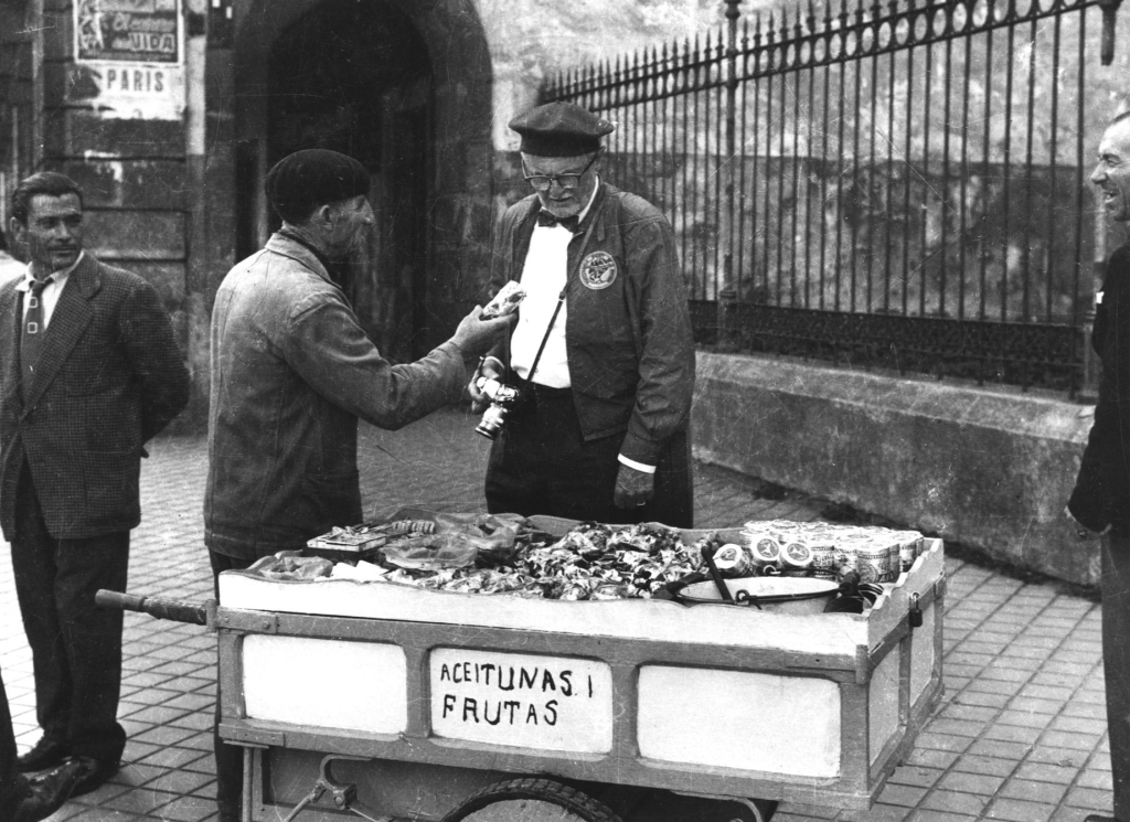 Vendedor ambulante que frecuentaba a Marina da Coruña vendendo aceitunas, froitos e caramelos en abril de 1959